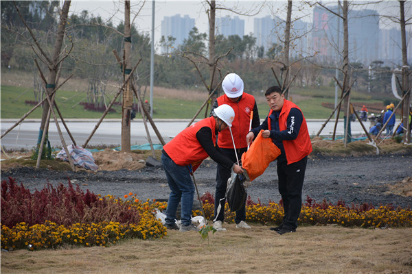 上午十时三十分,志愿服务活动开始后,乐鱼中国官方网站-乐鱼leyu(中国) 党委委员、副总经理、项目部总经理汪洋亲自带头参加活动,其他党员干部带头干,职工群众积极干,参建单位负责人志愿加入干,大家拿起工具、弯下腰去,捡起草地上的生活垃圾,集中放进现场放置的垃圾桶内;没有拿到工具的同志们也拿起简易垃圾袋,将捡到的生活垃圾放进垃圾袋盛满后再放进垃圾桶内。一时间,党徽熠熠、爱心闪闪、干劲满满,不到一个小时时间,约20人的志愿服务队伍完成了近20000平米区域的垃圾清理任务,景观施工现场面貌大为改观。