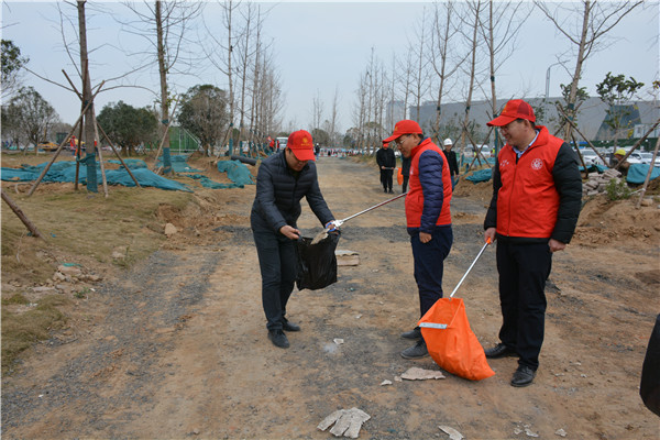 上午十时三十分,志愿服务活动开始后,乐鱼中国官方网站-乐鱼leyu(中国) 党委委员、副总经理、项目部总经理汪洋亲自带头参加活动,其他党员干部带头干,职工群众积极干,参建单位负责人志愿加入干,大家拿起工具、弯下腰去,捡起草地上的生活垃圾,集中放进现场放置的垃圾桶内;没有拿到工具的同志们也拿起简易垃圾袋,将捡到的生活垃圾放进垃圾袋盛满后再放进垃圾桶内。一时间,党徽熠熠、爱心闪闪、干劲满满,不到一个小时时间,约20人的志愿服务队伍完成了近20000平米区域的垃圾清理任务,景观施工现场面貌大为改观。